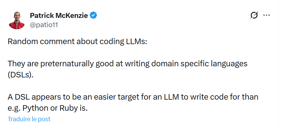 Note : I tried having a LLM write this article based on a DSL I designed. Writing conventions are not as fixed as coding conventions. We’re not retired yet.